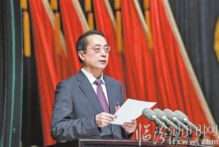 2月23日,在臨汾市第四屆人民代表大會第八次會議上,市長李云峰作政府工作報告。